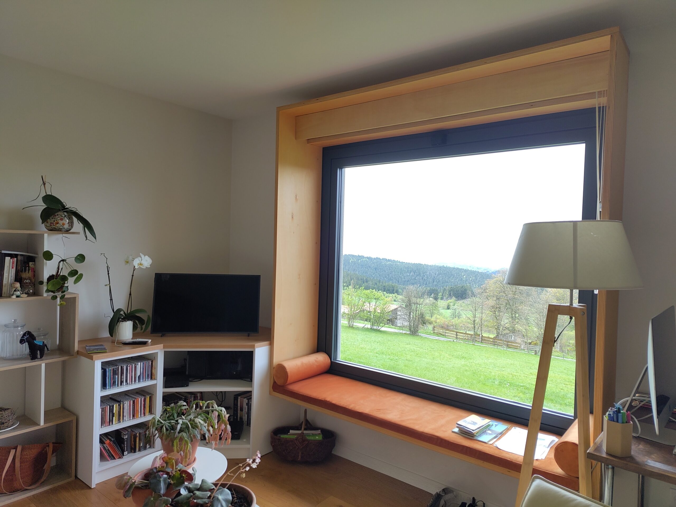 Un endroit chaleureux où l’on est assis sur le bowwindows avec un café, regardant la chaine des Puys qui sort aux dessus des nuages.